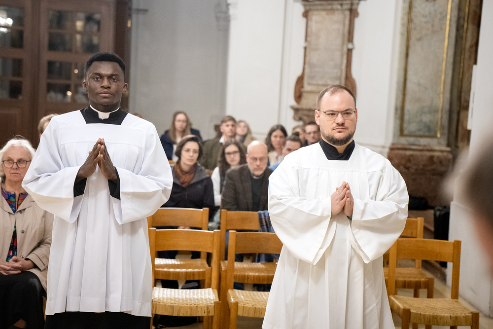 Die Admissio ist ein bedeutender Schritt auf dem Weg zur Weihe. In einer feierlichen Liturgie wird der Kandidat offiziell in die letzte Phase der Vorbereitung auf das Weihesakrament aufgenommen. Mit diesem Akt bekennt der Kandidat öffentlich seine Bereitschaft, den Dienst in der Kirche anzunehmen und seinen Weg der Berufung weiterzugehen. Diese Feier drückt die Anerkennung der Kirche aus und stärkt die Verbindung zwischen dem Kandidaten und der Gemeinschaft. Durch Gebet, Segen und Zuspruch wird der Kandidat auf seinem weiteren geistlichen Weg begleitet und ermutigt. Unter die Weihekandidaten aufgenommen wurden die Seminaristen Philipp Gartlehner und Henry Ekene Obi. Wir waren mit der Kamera dabei.